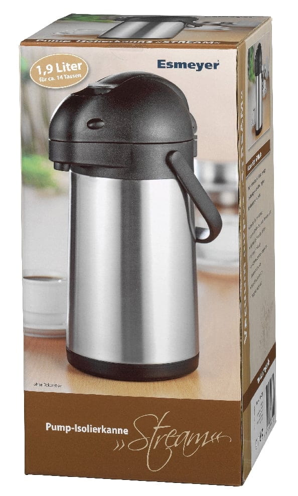 Pump-Isolierkanne STREAM, Inhalt: 1,9 Liter, aus doppelwandigem Edelstahl, Höhe: 33 cm, Durchmesser: 15 cmPumpspender / Pumpkanne mit Pumpsystem aus Kunstst für eine 360 Grad Drehung.