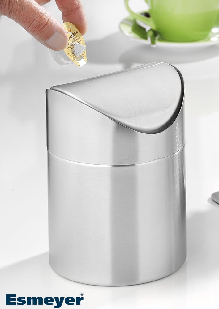 Der Tischabfallbehälter Ø12cm SWING mit Schwingdeckel ist für den professionellen Einsatz in Hotellerie, Gastronomie, Catering und Gemeinschaftsverpflegung ausgelegt. Mit seiner kompakten Bauform unterstützt er saubere Tischbilder am Frühstücksbuffet, in Konferenzbereichen oder an Self-Service-Stationen. Das Gehäuse aus Edelstahl 18/10 ist matt und gebürstet, wirkt hochwertig und ist zugleich unempfindlich im täglichen Betrieb. Der Schwingdeckel ermöglicht eine komfortable, kontaktarme Entsorgung kleiner Abfälle und trägt zur Hygienesicherheit bei.