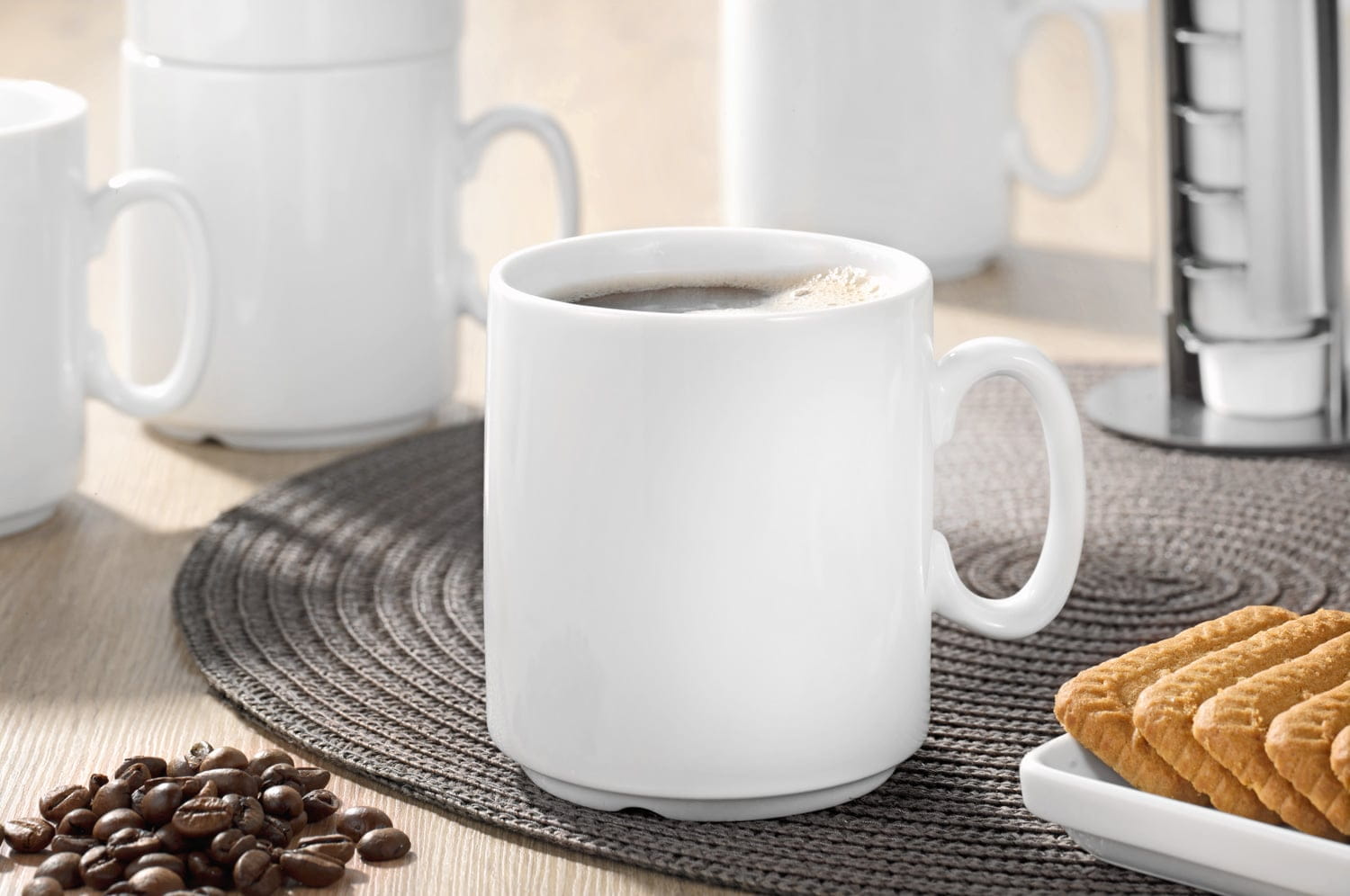 Kaffeebecher DIANE, Inhalt: 0,28 L, von caterado, Höhe: 8,9 cm, Durchmesser: 8,1 cm, aus weißem, hochwertigem Porzellan.Gut stapelbar, spülmaschinenfest und mikrowellengrandvoll: 0,32 L Gewicht pro Tasse: ca. 290g