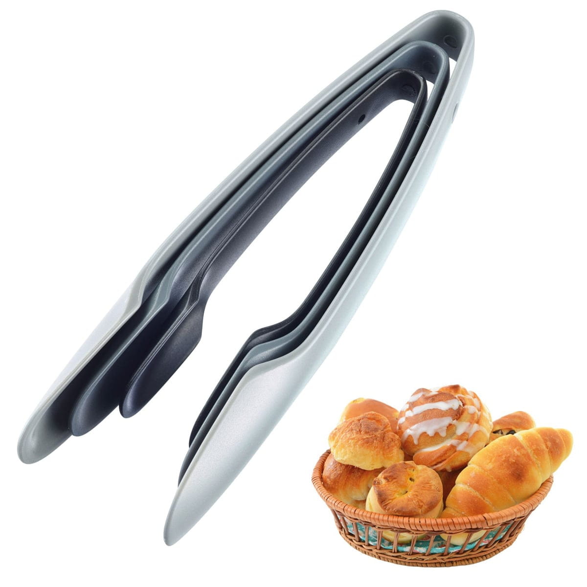 Für den Alltag besonders praktisch: Die drei Zangen lassen sich ineinander klicken und dadurch platzsparend lagern. Zudem sind sie spülmaschinengeeignet, BPA-frei und auf langlebige Nutzung ausgelegt. Abmessungen: 255 x 78 x 40 mm. EAN/GTIN: 4004094125478. 5 Jahre Garantie.