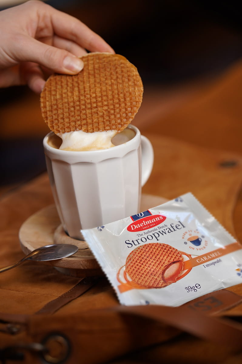 Die Daelmans Jumbo STROOPWAFEL von DAELMANS ist eine großformatige Karamellwaffel für Hotellerie, Gastronomie, Catering und Gemeinschaftsverpflegung. Ideal als To-go-Impuls am Counter, als Beilage zu Kaffeevariationen oder als süßer Snack im Konferenz- und Tagungsservice. Die Kombination aus knusprigen Waffellagen und aromatischer Füllung mit Zimt und Bourbonvanille sorgt für ein konsistentes Geschmackserlebnis und eine kalkulierbare Portionierung.