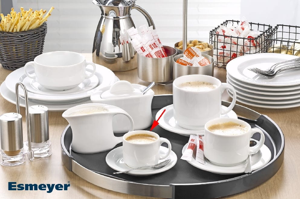 Im Betriebsalltag überzeugt die Obertasse durch Stapelbarkeit: Sie sparen Platz in Ausgabe, Spülküche und Lager und beschleunigen Mise-en-place-Prozesse. ADRINA steht für ein elegantes, hochwertiges Hotelgeschirr, das Qualität, Funktionalität und Design vereint und zugleich wirtschaftlich bleibt – ideal für Nachbeschaffung und Roll-outs über mehrere Standorte.