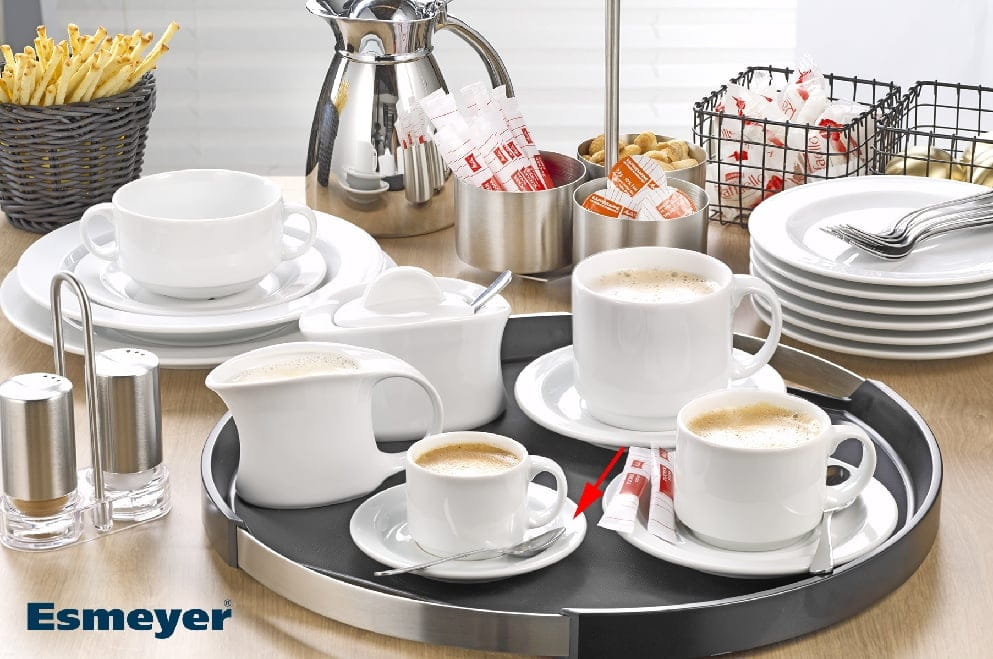 Die Espressountertasse 12cm ADRINA ergänzt Ihr Espressogeschirr in Hotellerie, Gastronomie und Catering um ein funktionales, optisch ruhiges Detail. In weiß gehalten, unterstützt sie ein einheitliches Tischbild und passt zu gängigen Tassenformen im Objektbereich. Mit 12 cm Durchmesser bietet sie ausreichend Auflagefläche für Espressotasse und Löffel und sorgt für sauberes Servieren am Counter, im Service oder bei Konferenzen.