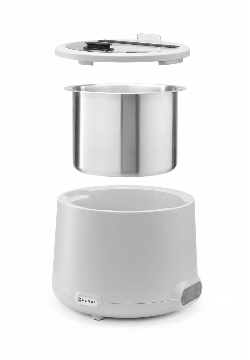 Der Suppenkessel 8,0 Liter HENDI UNIQ weiß ist für das sichere, konstante Warmhalten am Buffet, in Cateringlinien und in der Gemeinschaftsverpflegung ausgelegt. Das von Robert Bronwasser gestaltete UNIQ-Design unterstützt eine hochwertige Front-of-House-Präsentation, ohne die Funktion zu vernachlässigen. Die produktschonende Bain-Marie-Heizung reduziert das Risiko des Überhitzens – ideal für Suppe, Eintopf oder Chili im laufenden Service.