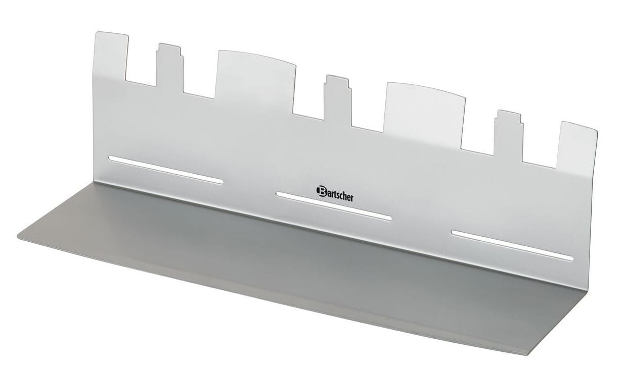 Die kratzfesten Kunststoffbehälter und das lackierte Stahlblech sind auf hohen Durchsatz ausgelegt. Dank Wandmontage bleibt die Arbeitsfläche frei; die Ausgabesituation ist für Schalen bis 75 mm Höhe optimiert. Maße: 54 x 17 x 39,5 cm, Gewicht 5,6 kg. Ideal als langlebige Buffetlösung – auch passend in Konzepte mit Bartscher-Ausstattung.