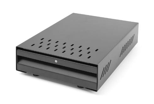 Schubladenmodell aus Karbonstahl. Mit abnehmbarer Abklopfstange und perforiertemGehäuse.
