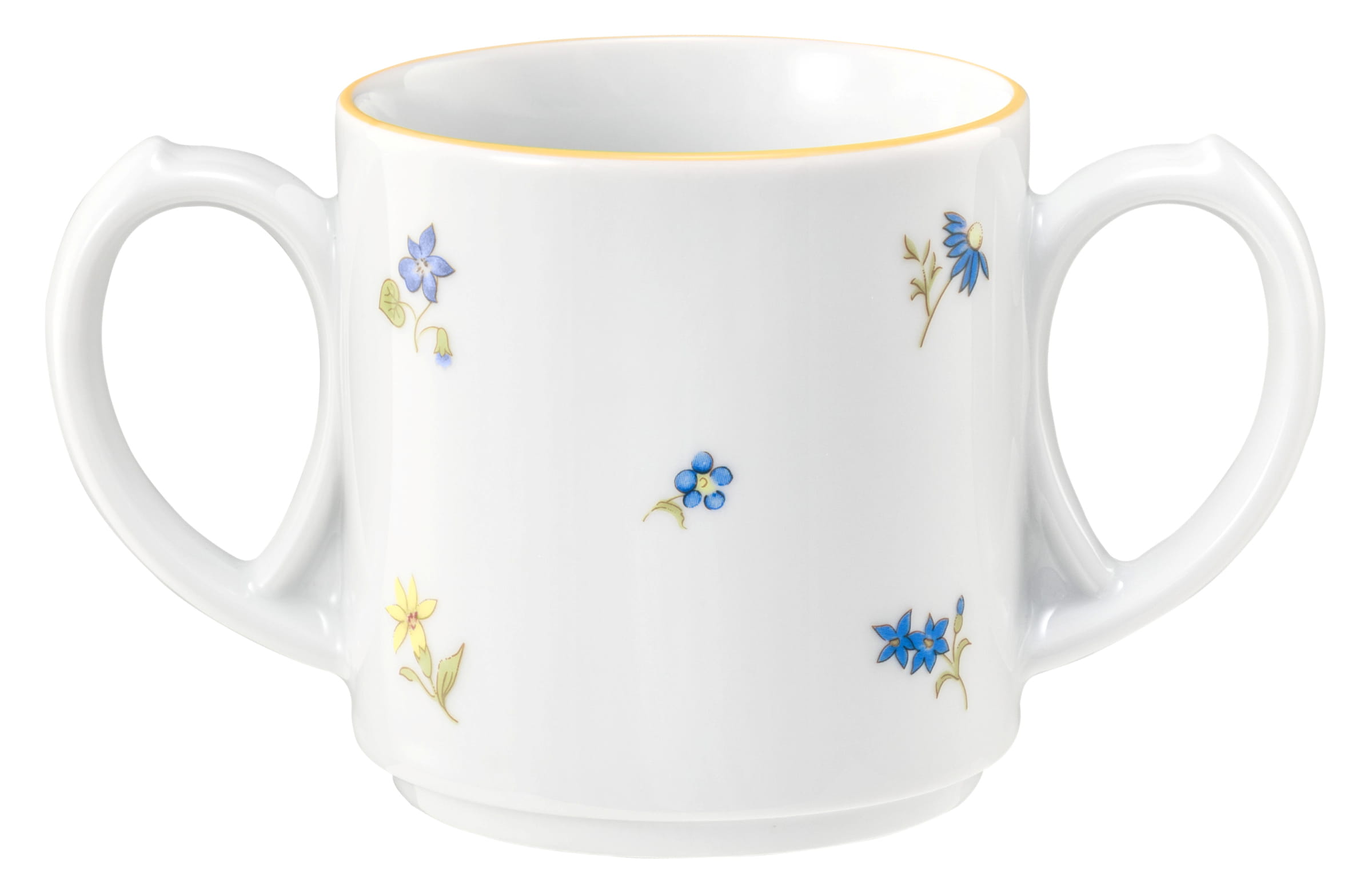 Produktinformationen "Becher rund mit 2 Henkel 0,28l COMMUNITY streublume gelbe linie"
