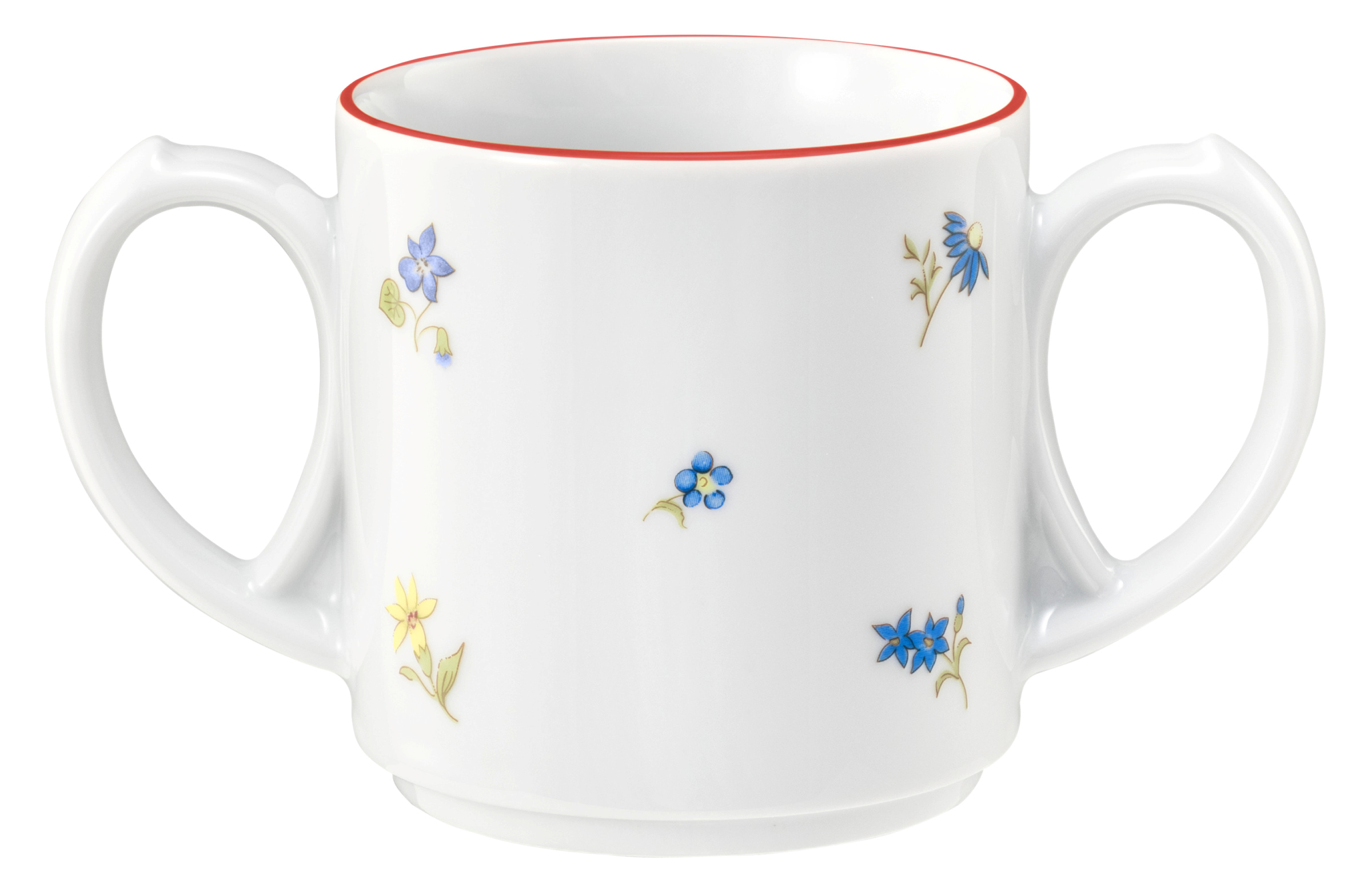 Produktinformationen "Becher rund mit 2 Henkel 0,28l COMMUNITY streublume rote linie"