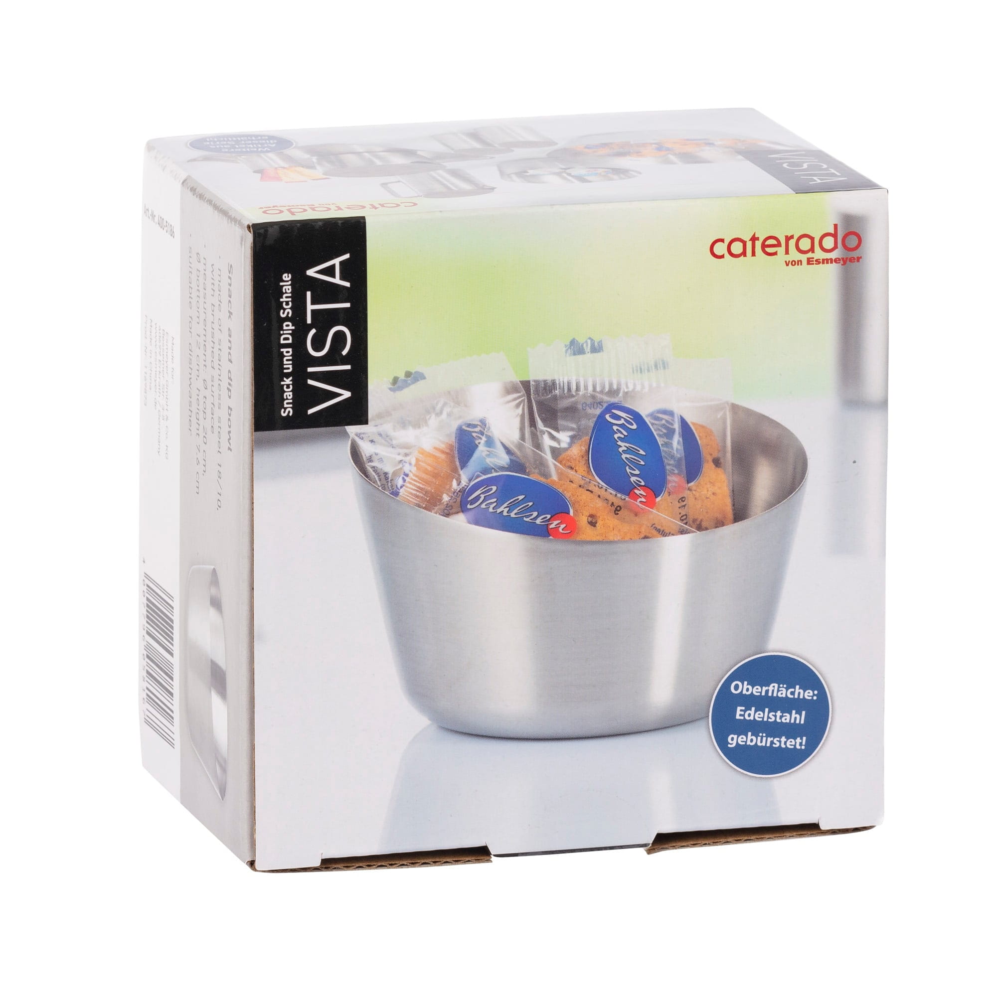 Die Snack und Dip Schale 12cm VISTA ist für professionelle Ausgabesituationen in Hotellerie, Gastronomie, Catering und Gemeinschaftsverpflegung konzipiert. Das Modell von Caterado unterstützt eine saubere, portionierte Darbietung von Dips, Antipasti, Nüssen oder Toppings – am Tisch, im Bankett oder am Buffet. Mit Durchmesser 120 mm / 88 mm und einer Höhe von 74 mm eignet sich die Schale für kontrollierte Portionsgrößen und eine klare Speisenführung. Die gebürstete Oberfläche wirkt bewusst schlicht, reduziert Reflexionen und passt zu modernen Edelstahl- und Porzellankonzepten. Gefertigt aus Edelstahl 18/… steht die Serie VISTA für robuste Alltagstauglichkeit mit dem gewissen Etwas – ideal für standardisierte Abläufe und eine hochwertige Optik im Gästekontakt.