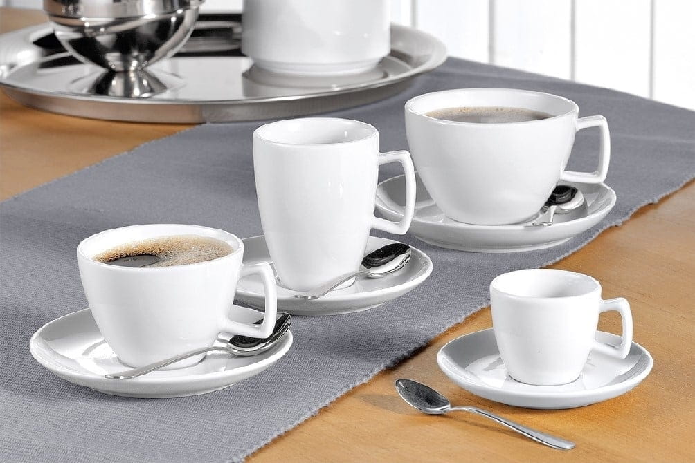 Dank eckiger Henkelform liegt die Tasse sehr handlich in der Bedienung, auch bei hohem Durchsatz. Die Höhe von 7,0 cm ermöglicht eine gute Stapel- und Stellbarkeit in Ausgabe, Tablettsystemen und auf Saucer-Stationen. Die passende Untertasse sorgt für sicheren Transport, sauberes Handling und eine professionelle Präsentation – ob im Frühstücksservice, im Konferenzbereich oder bei Caterado-Bestellungen.