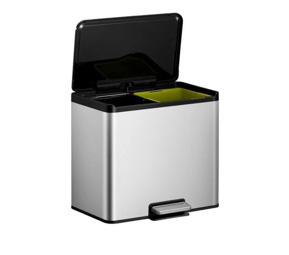 Für die Abfalltrennung stehen zwei Kunststoff-Inneneimer mit jeweils 15 Litern zur Verfügung – praxisgerecht für Restmüll und Wertstoffe. Die Stay-open-Funktion verriegelt den Deckel, sodass das Reinigen sowie das Wechseln von Abfallsäcken deutlich leichter und zeitsparender gelingt. Als Lösung aus dem Umfeld von Vepa Bins eignet sich das Modell für strukturierte Entsorgungsprozesse.