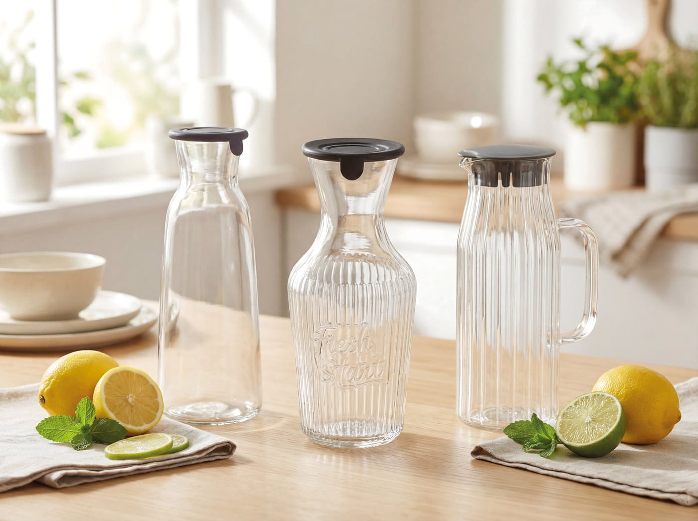Die Glasflasche 1L LITT ist eine praktische Lösung für Hotellerie, Gastronomie und Catering, wenn Wasser, Säfte oder Infused Drinks sauber, hygienisch und ansprechend bereitgestellt werden sollen. Mit einem schwarzen Silikondeckel lässt sich der Inhalt zuverlässig verschließen – ideal für Buffets, Tagungsbereiche, Frühstücksservice oder den Einsatz in der Gemeinschaftsverpflegung. Das klare Glas unterstützt eine schnelle Sichtkontrolle und wirkt hochwertig auf dem Tisch und in der Auslage.