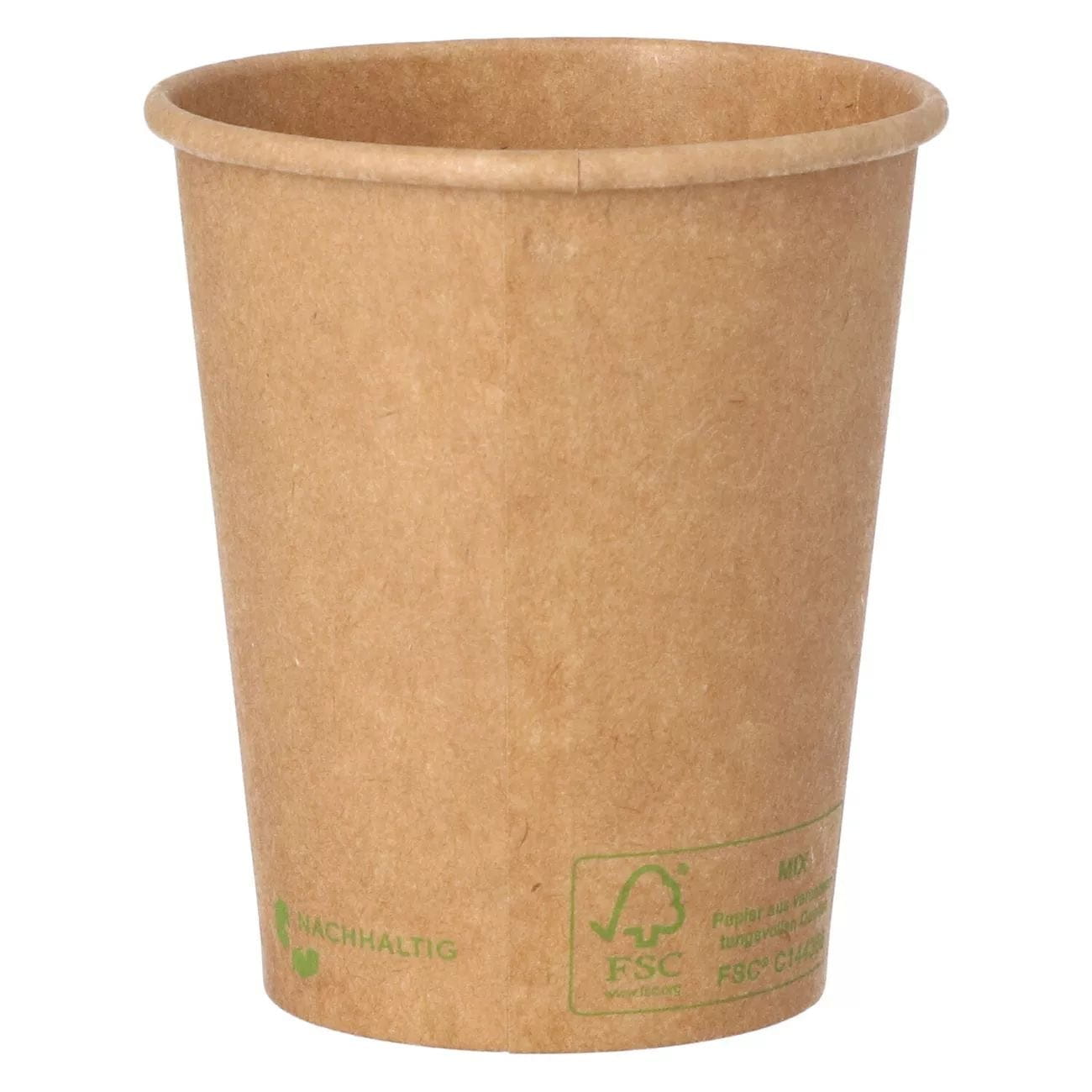 Der 50 Stück Coffee-to-go-Becher 200ml KRAFT CUPS braun ist die platzsparende Lösung für kleinere Heißgetränke in Gastronomie, Hotellerie, Catering und Gemeinschaftsverpflegung. Aus naturbraunem Kraftpapier gefertigt, verbindet die einwandige Ausführung eine wirtschaftliche Handhabung mit stabiler Form. Die innenliegende PE-Beschichtung sorgt für zuverlässige Dichtigkeit und hygienischen Ausschank – auch bei heißen Getränken. Das zeitlose Design in Naturbraun mit dezentem, grünem „Natürlich“-Aufdruck unterstützt eine moderne Thekenpräsentation. Für Transparenz beim Endkunden sind Recycling- und Materialhinweise wie „Produkt enthält Kunststoff“ sowie die FSC® MIX-Kennzeichnung sichtbar. Mit 200 ml (ca. 8 oz) und Ø 80 mm passt der Becher in gängige Abläufe; die VE mit 50 Stück ist ideal für kleinere Betriebe, Events und Messen. Auch Nette wird den klaren Nutzen im Tagesgeschäft schätzen.